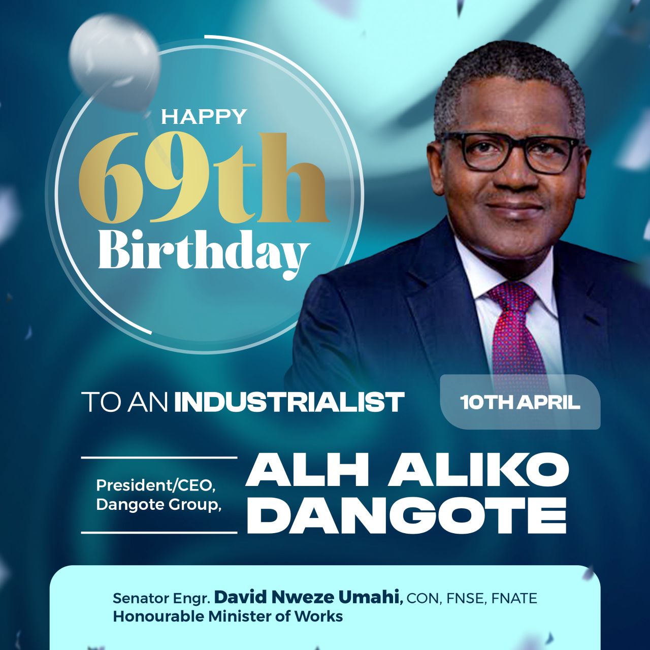 The Minister of Works, David Nweze Umahi, has congratulated Africa’s richest businessman, Aliko Dangote, on the occasion of his 69th birthday, describing his contributions to Nigeria’s industrial development as remarkable and inspiring.